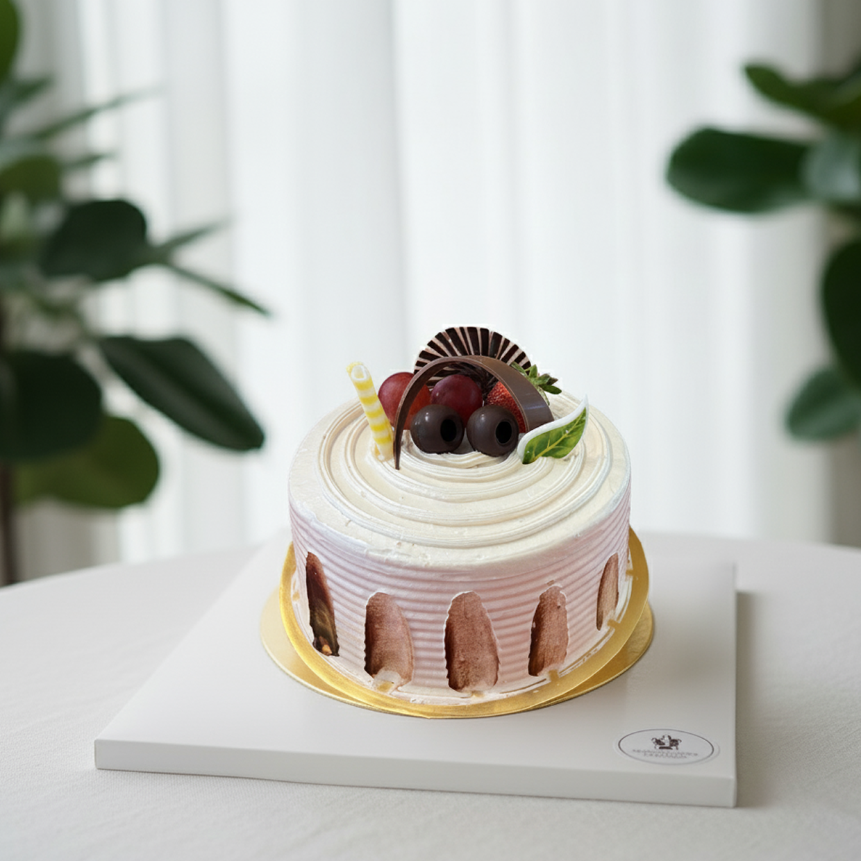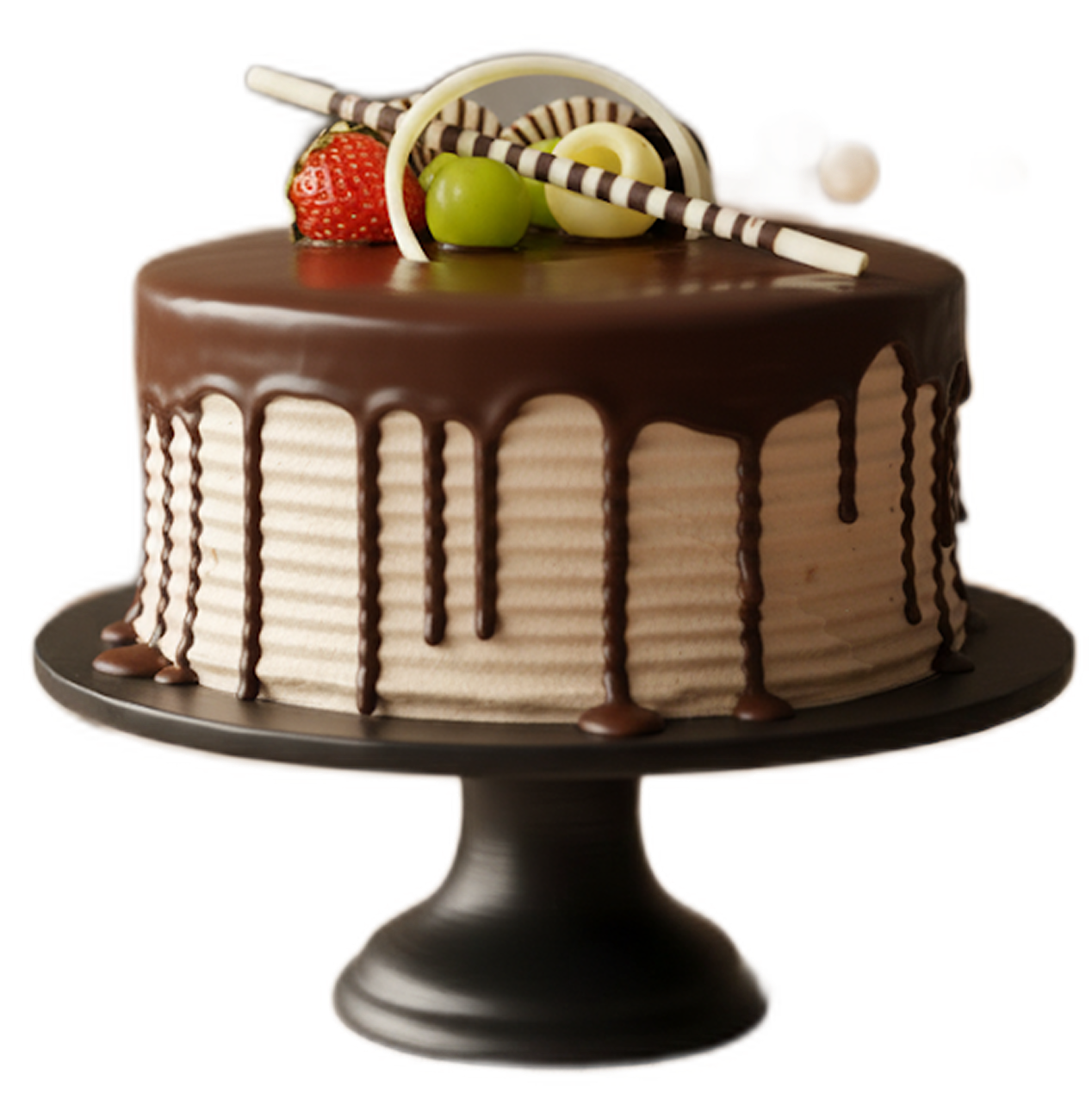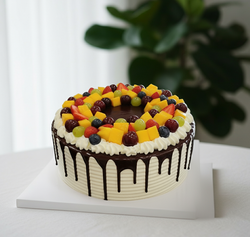 A decadent chocolate sponge layered with fresh fruit for a sweet and refreshing balance.