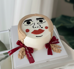 a custom-decorated that captures the popular hand drawn cake by utilizes bold lines and expressive features.