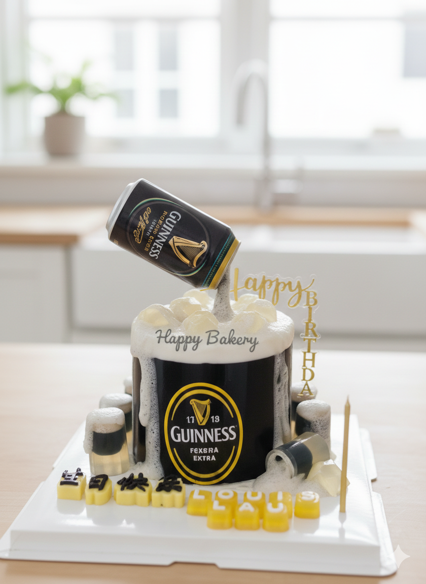 Inspired by the Guinness stout with dramatic “pouring can” topper.